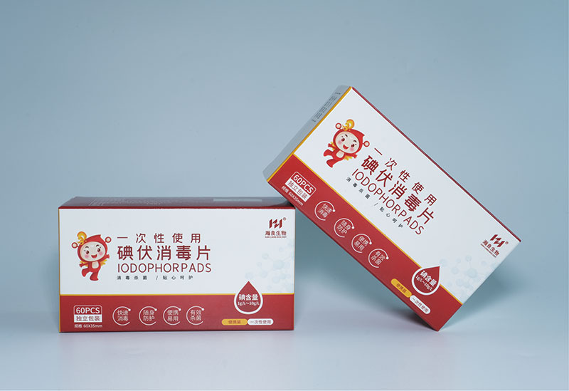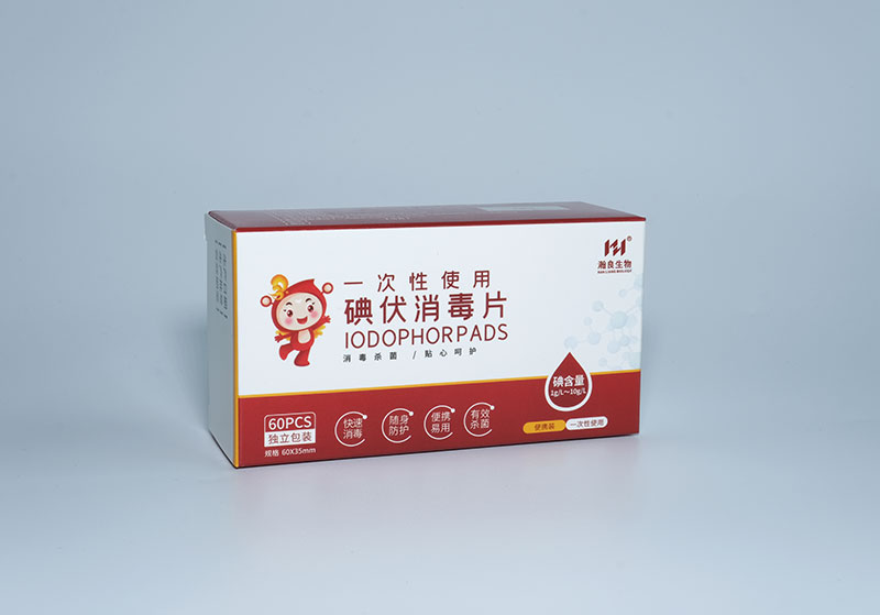 产品说明:本产品适用于注射、输液前对完整皮肤的消毒,由无纺布与有效碘含量为4.1 g/L-5.1 g/L的碘伏消毒液组成。